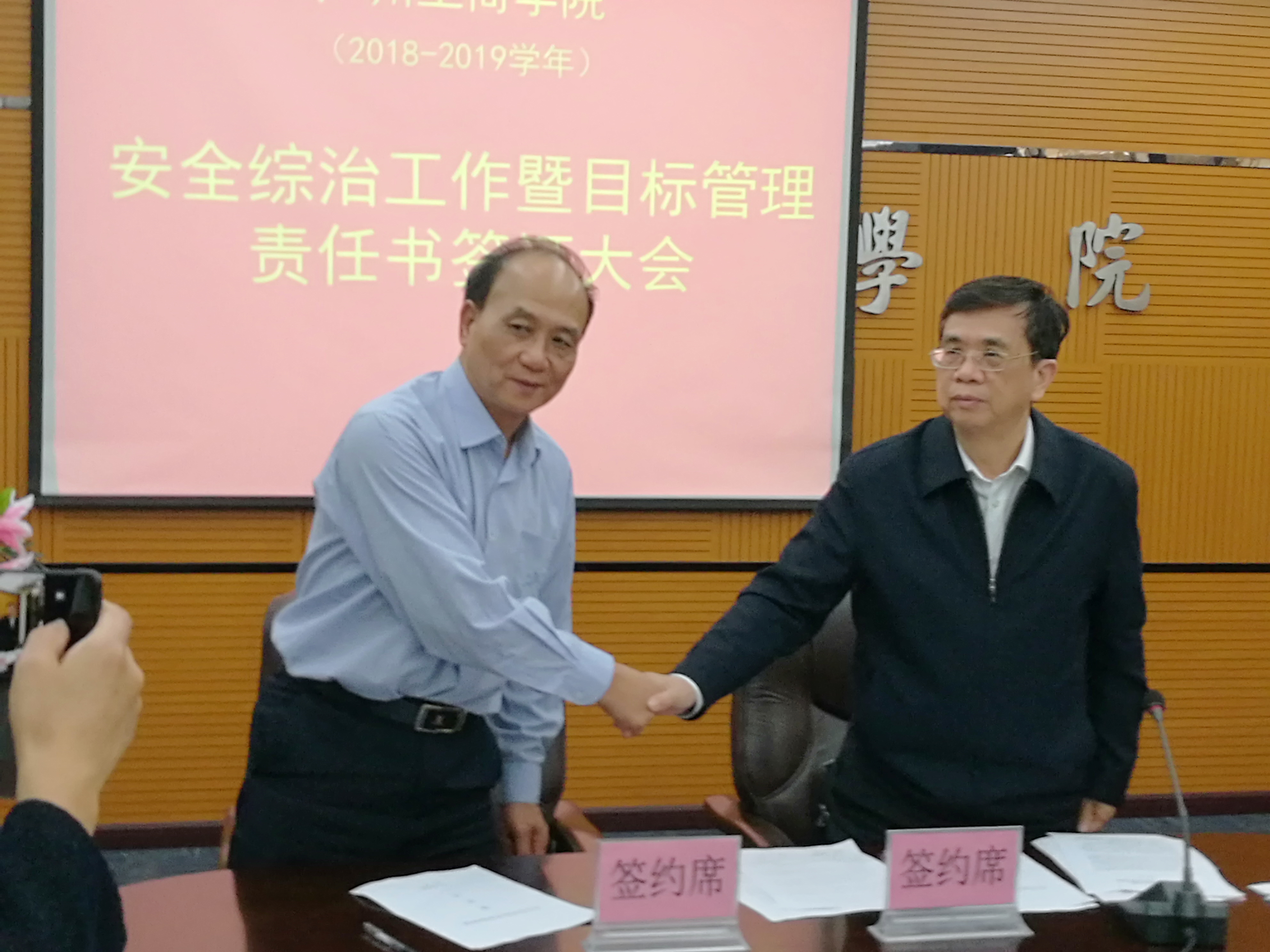 邝邦洪院长与院属各部门责任人签订了《安全综合治理目标管理责任书》,并提出了以下四点要求: