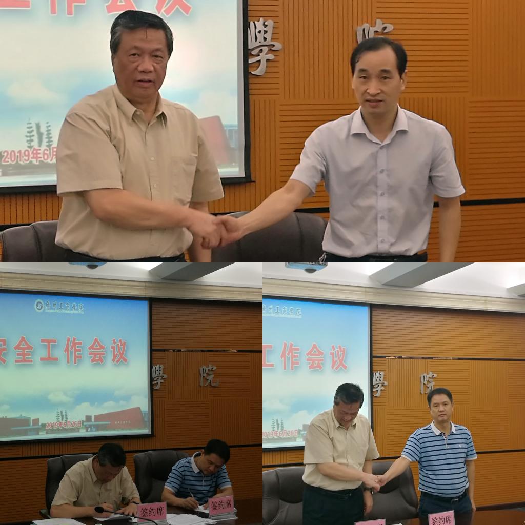 会上,学院综治办通报了本学期以来校园安全工作情况;保卫处、三水校区管委会分别通报了本学期以来两校区安全工作情况。学院综治领导小组常务副组长钟伟强书记与学院后勤处等6个学院经营管理单位责任人签订了消防安全工作责任书,传达了上级会议和文件精神,部署了安全月、学期末校园安全稳定工作。