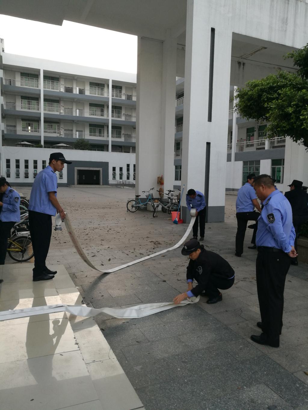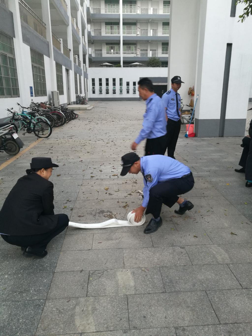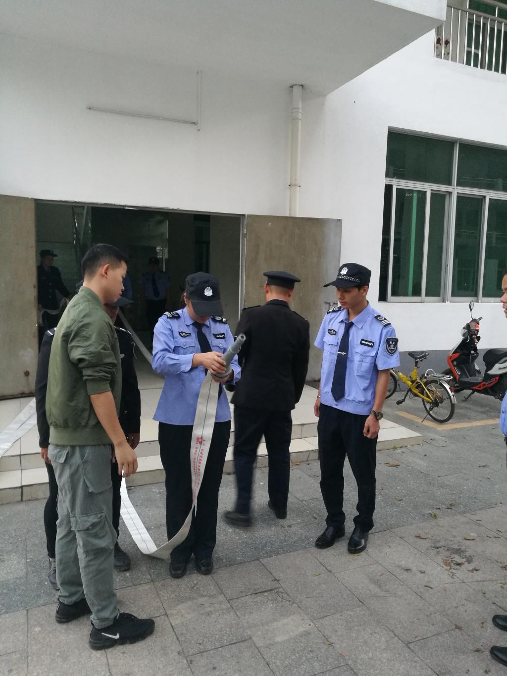 11月4日早晨6点20分,三水校区校卫队根据保卫处制定的训练方案,利用早训时间组织校卫队员进行了一次消防训练。
