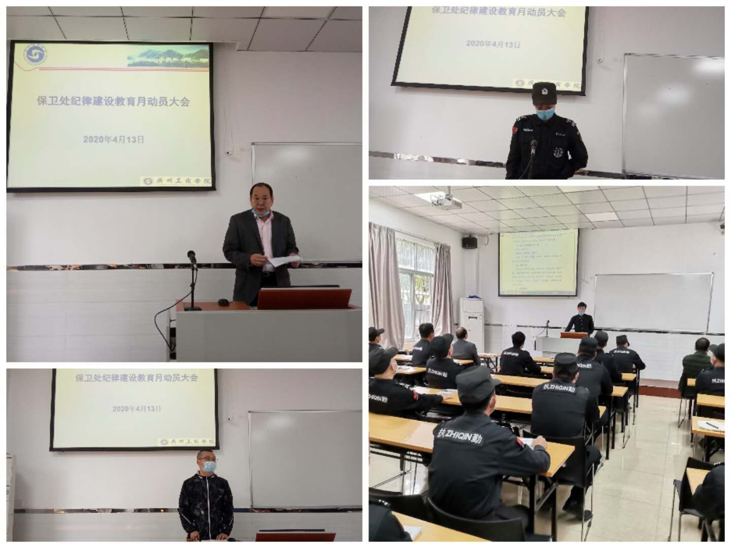 为了继续做好新冠肺炎疫情防控工作,保障好全院师生的健康安全和校园的平安稳定,保障好我院的本科合格评估工作顺利开展,为日趋临近的师生返校工作做好准备,我院保卫处于4月13日、4月16日分别在两校区召开了“纪律建设教育月活动”动员大会。