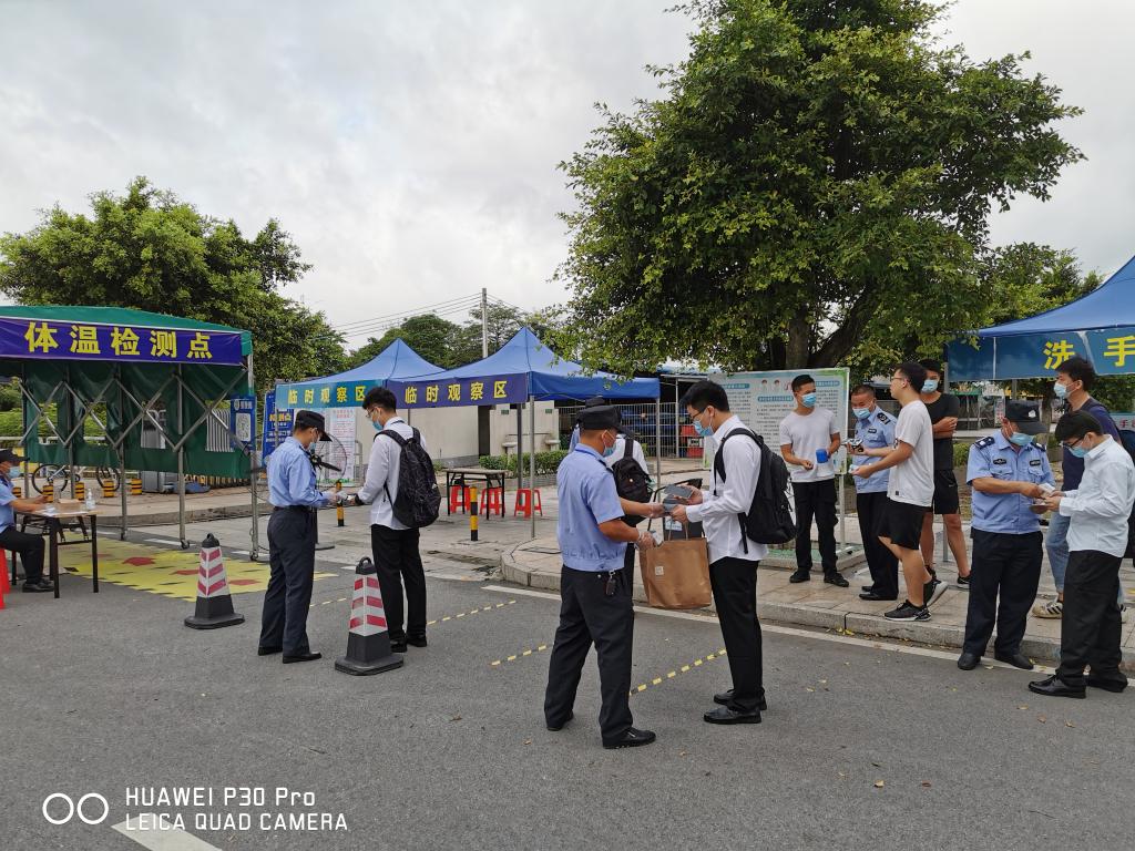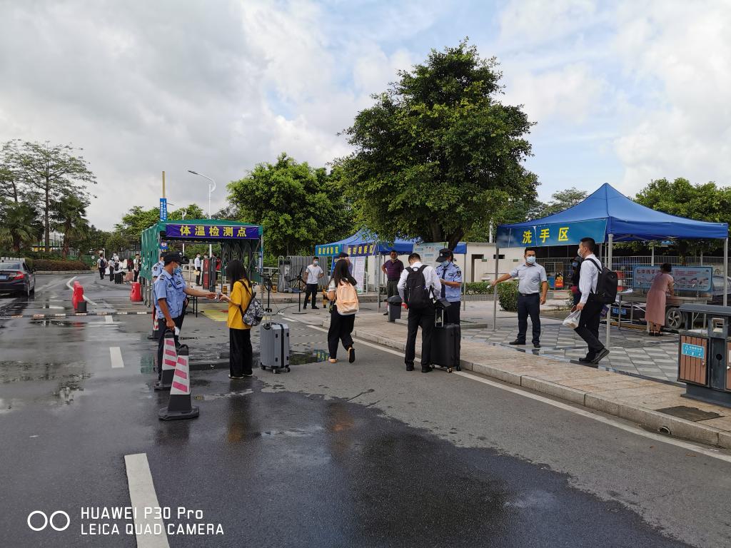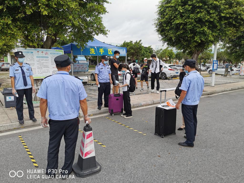 6月21日,我院保卫处全员上岗,迎接三水校区首批889名2020届毕业生返校。