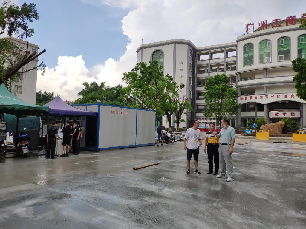8月14日,为保障学生返校工作的有序开展,保卫处林剑平处长带领处室相关同志对花都校区在建工地进行了安全检查,以“查隐患、防事故、保安全”为主题,开展校园安全监督工作;8月15日,林处亲临花都校区大门岗,靠前指挥,检查我处各项工作执行落实情况,要求各班队员严格按照疫情防控指示,严守校园第一道岗。