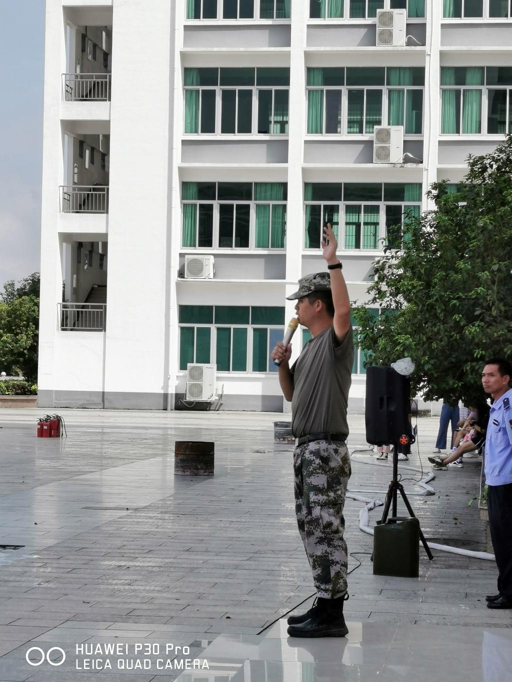 保卫处詹建业副处长、毛拓艺副处长现场指挥,唐劲松保卫科长、李天贤、何鑫以及三水校区13名校卫队员、各系新生辅导员全程配合了演练。