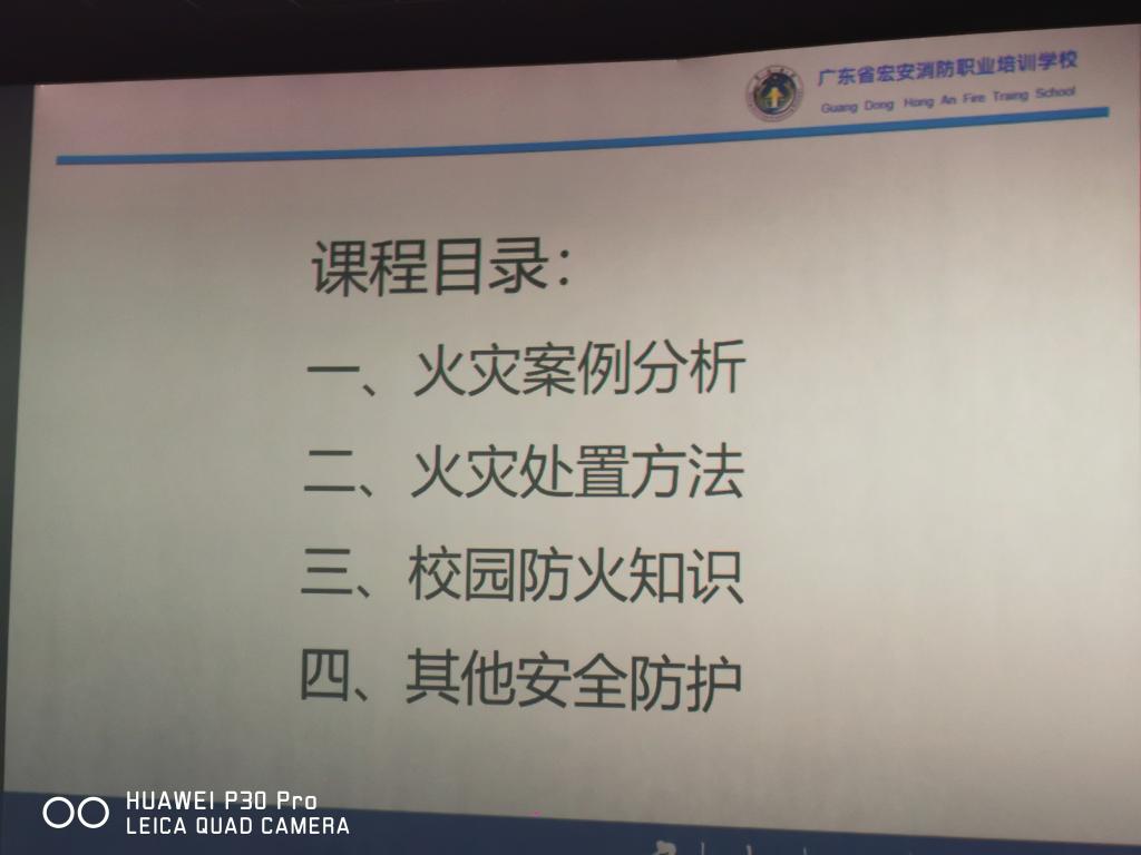 为落实广东省今冬明春火灾防控工作的通知,贯彻党的十九届五中全会精神和习近平总书记加强安全生产和消防安全的指示精神,强化各部门监督责任和消防安全主体责任落实,加强校园火灾隐患综合治理,结合我院实际情况,保卫处联合学生处、后勤处于12月10下午组织了一次消防安全知识讲座及灭火演练,讲座邀请到广东省宏安消防职业培训学校祝潋清老师讲授消防安全知识。