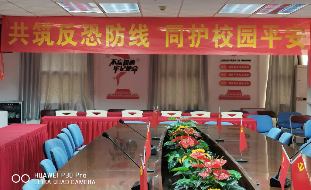 反恐怖宣传教育过程中,还融合了反毒品教育、反电信诈骗教育以及消防安全、交通安全、防溺水等安全教育的内容,保卫处在校园悬挂了宣传横幅。