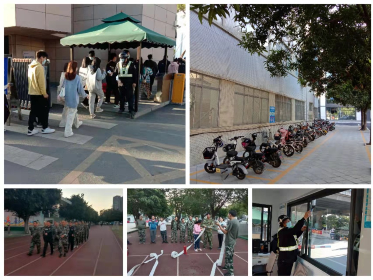 新任保卫科副科长雷洁森同志与消防专员何鑫配合默契,充分发挥四个巡逻班长的骨干带头作用,圆满完成“民办高校对外开放座谈交流会”、校运动会、以及国际交流中心举办的多批次培训班等大型活动的安保任务和秩序管控。积极开展消防安全宣传月活动,消防专员何鑫组织校内二级经营单位开展了八场消防安全宣传和演练活动,宣传、培训覆盖人数近300人。坚持日常消防巡查,及时发现消防隐患。于11月24日晚,妥善处置了图书馆一楼烟感报警事件,督促责任人进行了妥善处理、消除了隐患。消防专员何鑫带领部分校卫队员对学生宿舍、教工宿舍进行了巡查,及时清理纠正学生宿舍走廊晾晒衣物等现象。三水区消防大队对三水校区进行的“双随机”抽查结果很满意。继续保持疫情防控工作力度,严格执行外来人员进入校区的报备程序,尤其是对5661人次进入校园进行培训和拓展训练的人员严格查验程序,较好地维护了校区全体师生的健康安全和教学工作秩序。配合乐平交警部门清理校园内20辆违规车辆,使校区内电动车违规行驶的情况有所好转。坚持填报好《特殊情况周报表》,建立大门口车辆人员进出信息统计制度以来,已统计进入校区人员车辆信息11661条(不含持出入证和教师工作证的人员车辆信息),向管委会填报《三水校区特殊情况周报表》信息249条。为校领导及时掌握校区人员车辆进出动态,发现问题和处理问题提供了第一手资料。