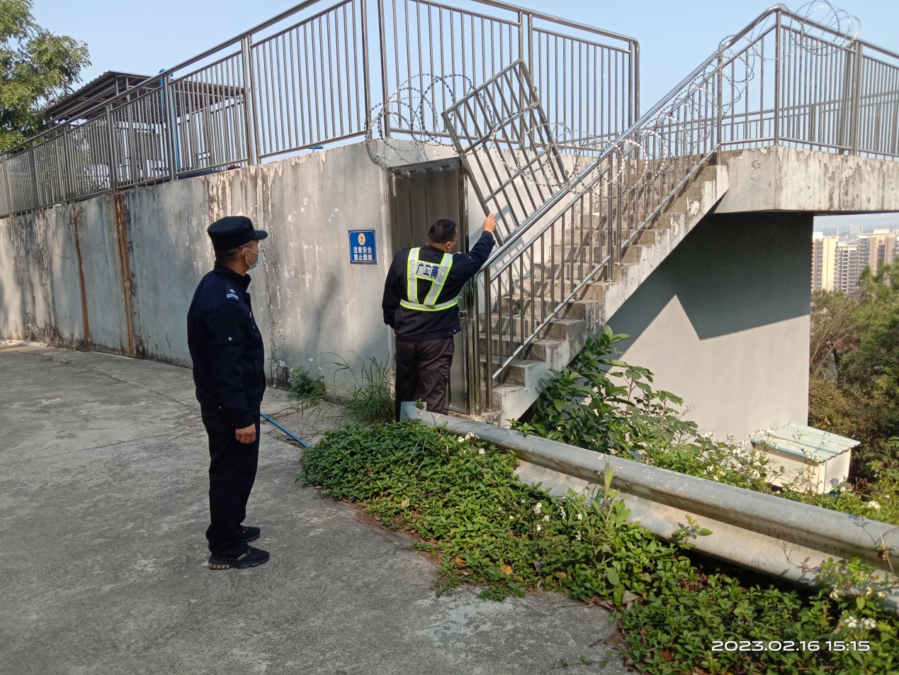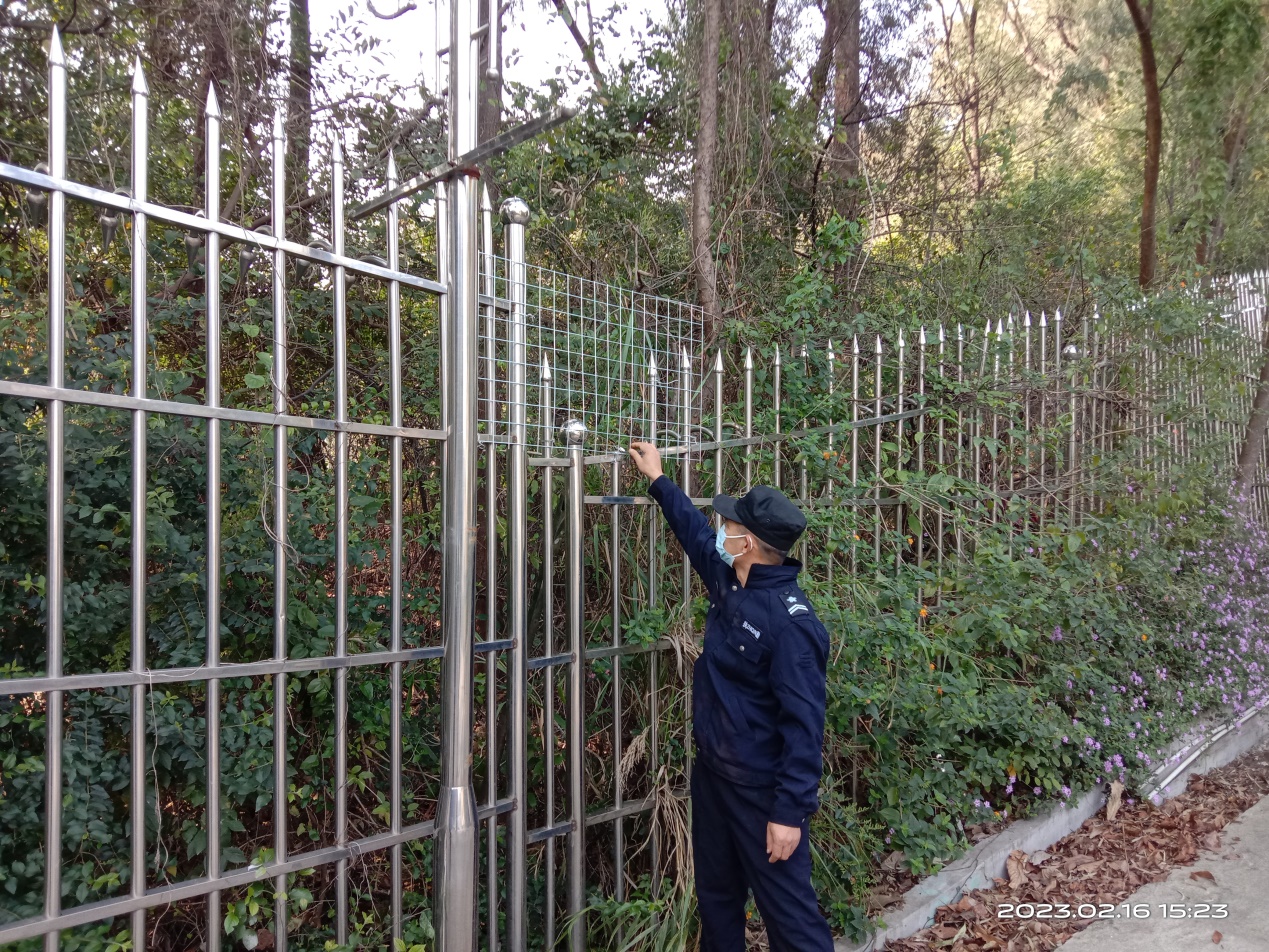 对环山水池等安全防护网进行检查,确保用水安全