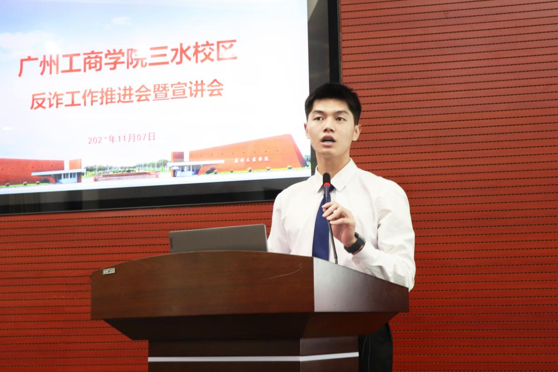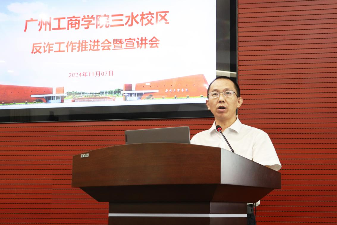 管委会主任谭全在发言中通报了校区近期师生电信网络诈骗情况。他指出,目前三水校区师生电信诈骗案件仍处于高发状态,强调全体师生在反诈工作中要杜绝形式主义,各部门要抓落实、促成效。他还部署了八项工作重点,包括加强宣传教育、完善联防联控机制、强化技术防范等,并提出多项反诈宣传措施。