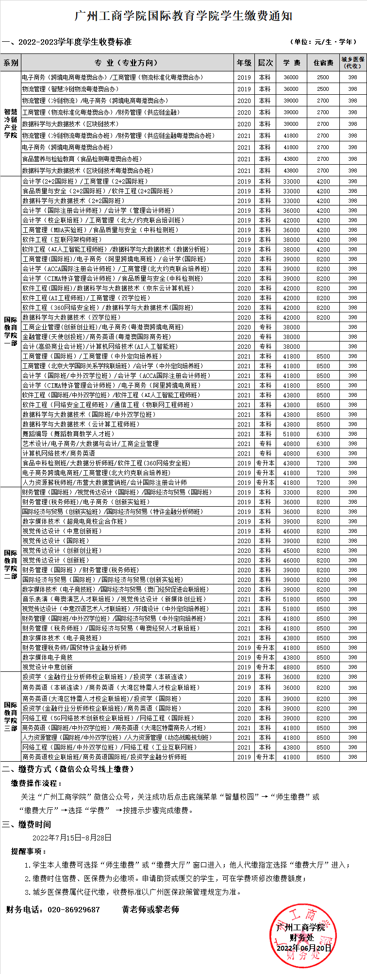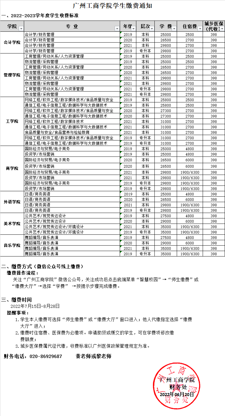 ky开元集团官网2022年新生收费标准公示