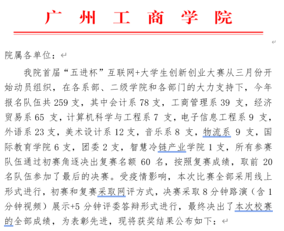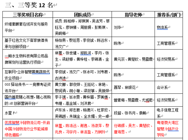 2020年6月17日,ky开元集团官网首届“五进杯”互联网+大学生创新创业大赛落下帷幕,由智慧冷链产业学院2019级陈浩远等8位同学组成的“优序智慧冷链物流公司-开启中国冷链物流行业节能减排绿色道路”项目团队,荣获三等奖。这是产业学院学子首次参加该项目并取得的最好成绩。