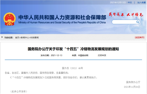 12月12日,国务院办公厅关于印发《“十四五”冷链物流发展规划的通知》(以下简称通知),要求到2025年,初步形成衔接产地销地、覆盖城市乡村、联通国内国际的冷链物流网络,基本建成符合我国国情和产业结构特点、适应经济社会发展需要的冷链物流体系。