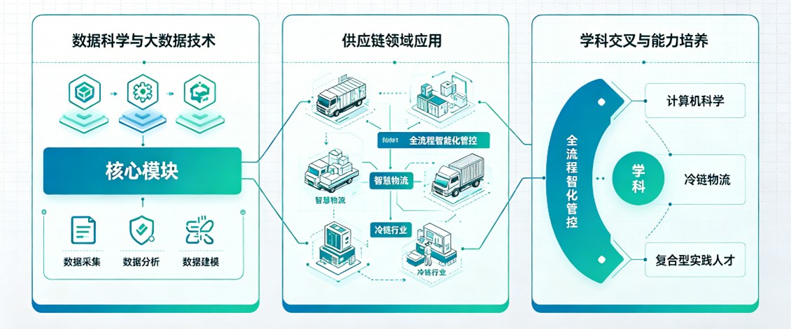 本专业聚焦数据科学与大数据技术在供应链领域的深度应用,依托计算机科学、冷链物流等学科交叉优势,以“技术驱动+冷链场景赋能”为核心,培养具备数据采集、分析、建模与供应链优化能力的复合型实践人才。