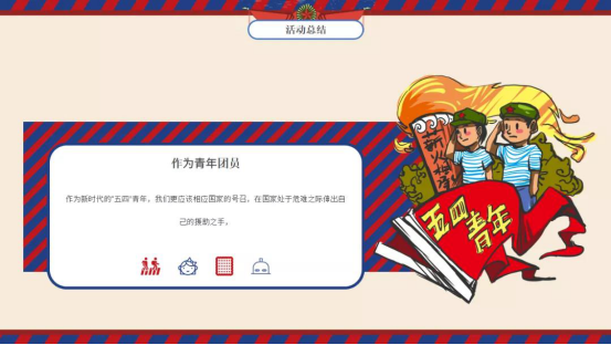 青年团对“抗疫”进行演讲,吴丹同学为我们演讲“疫情就是命令,防控就是责任“;徐勇康同学向我们分享了他的“抗疫”心得体会;张润熙同学在疫情期间做青年志愿者,给我们分享了他在当志愿者所学到的知识。
