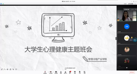 2020年5月19日,智慧冷链产业学院在腾讯会议app上召开大学生心理健康主题班会。产业学院辅导员唐海恩及2019级产业学院全体学生参加了此次会议。本次会议围绕大学生心理健康及同学们的生活状态进行开展。