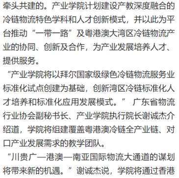 南方日报英文版报道粤港澳大湾区智慧冷链产业学院成立
