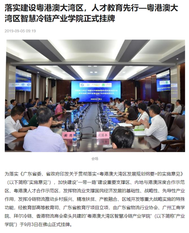 搜狐网:粤港澳大湾区智慧冷链产业学院正式挂牌