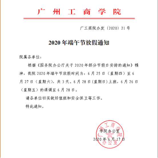 2020年端午放假通知