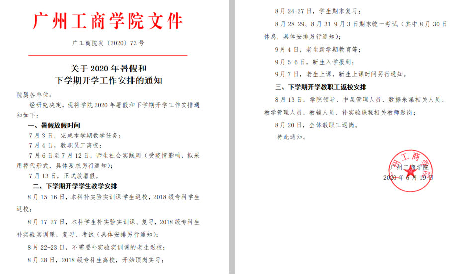 关于2020年暑假和下学期开学工作安排的通知