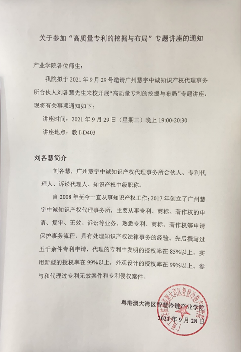 关于参加“高质量专利的挖掘与布局”专题讲座的通知