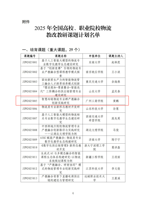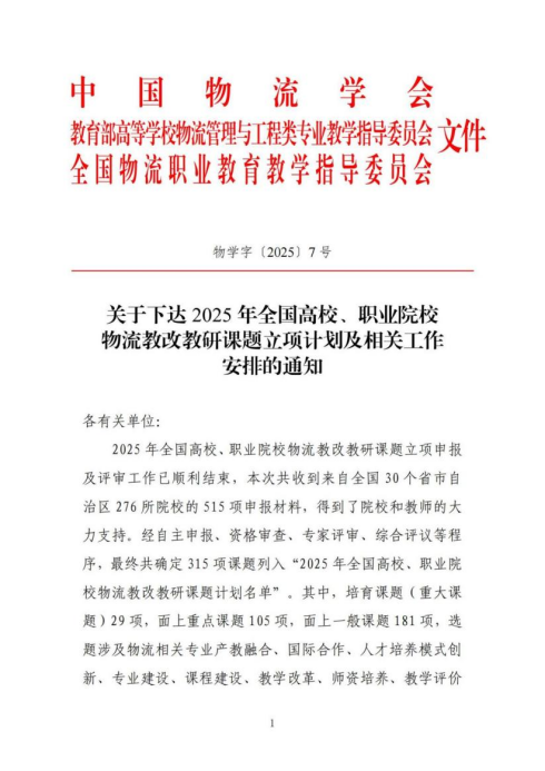 13.5月6日,中国物流学会、教育部高等学校物流管理与工程类专业教学指导委员会、全国物流职业教育教学指导委员会联合发布2025年全国高校、职业院校物流教改教研课题立项通知。智慧冷链产业学院《智慧冷链物流专业群产教融合创新探索与实践研究》获全国高校、职业院校物流教改教研重大课题。