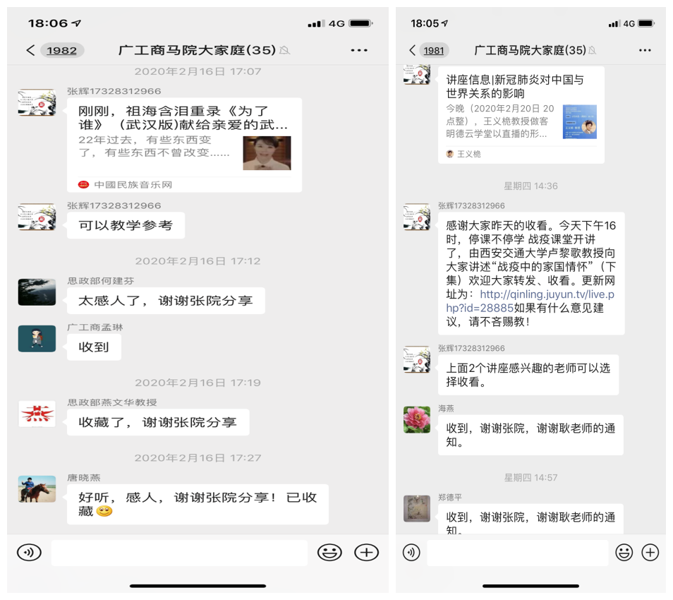 其次是因势而新。当前我们面临着全民防疫战疫的新形势,思政课教学就必须直面挑战,积极适应战疫情势的发展需要,坚持以生为本,创新教学手段,多管齐下,做到标准不降、内容不减,确保思政课的教学质量。一是成立了以马院院长为组长的在线教学工作领导小组,坚决落实学校有关疫情期间教学工作的规定,制定《2019-2020学年度第二学期疫情防控期间思想政治理论课在线教学组织与实施方案》及本学期拟开设的《马克思主义基本原理概论》、《毛泽东思想和中国特色社会主义理论体系概论》、《形势与政策及德学教育》三门思政课的线上教学具体实施细则,利用“优学院”、“人民网教育频道”、“粤港澳大湾区高校在线开放课程联盟”网络平台的课程资源,于3月16日-4月10日开展在线授课。为了确保上课实效,充分运用微信群、QQ群、钉钉等网络平台组织任课教师于3月9-14日提前学习和培训相关在线教学资源使用与教学方式。并要求任课教师严格执行教学大纲及授课计划,完成作业布置、课程测验、辅导答疑、课堂讨论等教学环节,同时,记录、统计并分析学生的学习状况,了解学生在线学习的效果;二是紧扣当前疫情防控形势,创新《形势与政策及德学教育》课的教学。按照教育部、省厅的要求,开展疫情防控思政专题在线教育。此外,我们还组织部分教师制作了《ky开元集团官网战“疫”专辑》专题课件:包括《身边的榜样——广工商师生党员的战疫故事》;《身边的感动——全国防疫战疫先进事迹视频集锦》;《众志成城,战疫必胜——以大学生之名书写无悔担当》等,充分运用图片、视频等多种方式对学生进行疫情教育;三是课上课下联动,共筑德育成效。开课后,马院教师将充分发挥思政课主渠道作用,辅助使用QQ群、微信群等,加强与学生的互动与心理疏导,帮助学生树立正确的防疫战疫的思想观念。