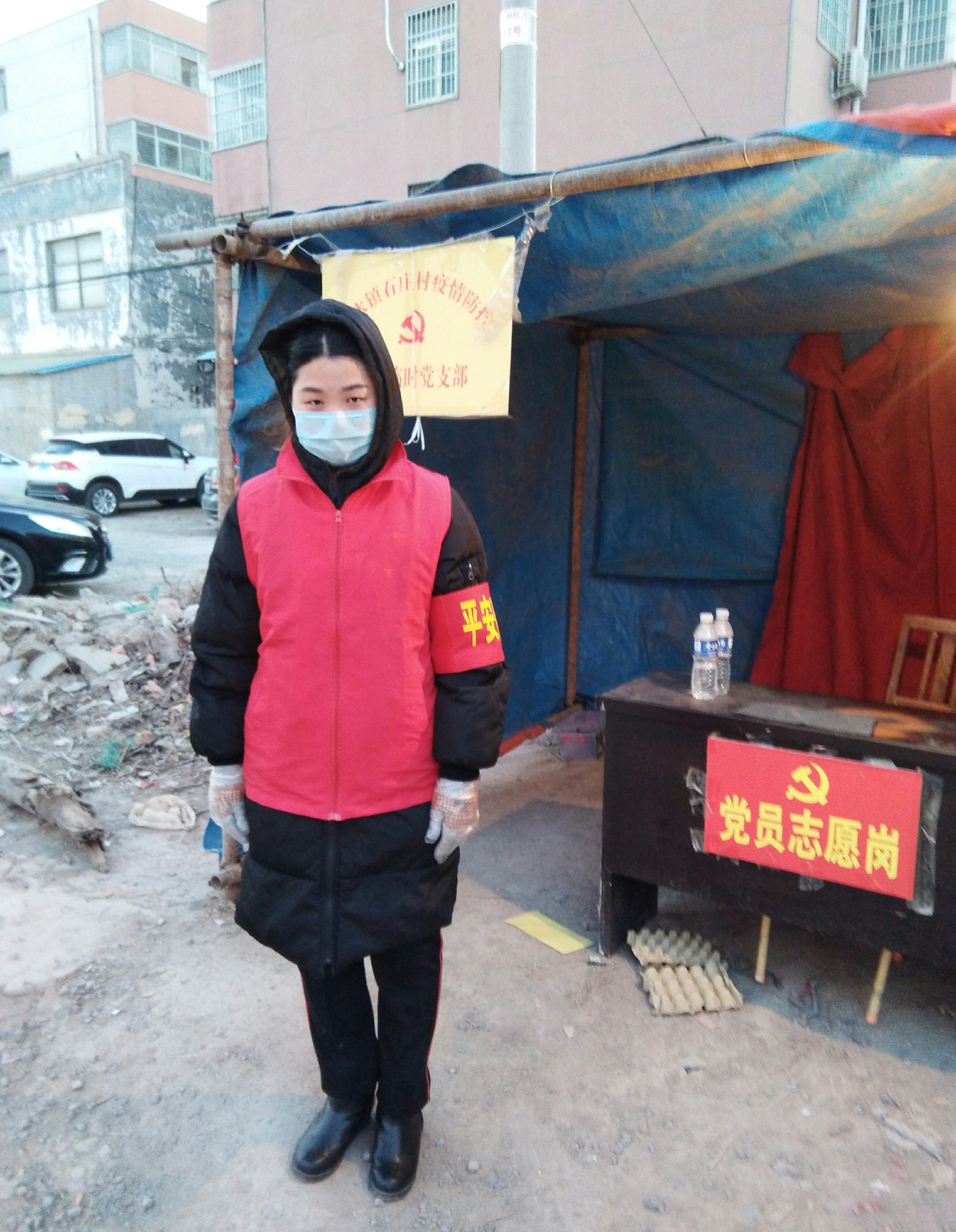 爱,不分地域,无论在哪里,都有马院人的身影。参与志愿者服务的还有孟琳等年青教师。疫情发生后,寒假回老家陪父母过春节的孟琳老师以一名共产党员、思政课教师的觉悟、标准以及情怀第一时间报名参加其所在社区疫情防控志愿者工作。孟琳老师所在社区地属城乡结合部,平时有九个胡同可从东、西、北三个方向自由出入,常驻居民以老年人为主,防疫任务重、难度大。从2月4日报名开始至今,孟琳老师在卡点主要从事轮班值勤,协助社区工作人员开展疫情监测登记、外来车辆排查、人员劝返、消毒消杀等工作。
