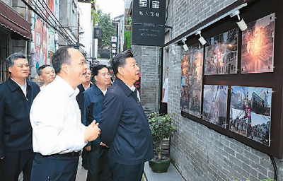 2015年2月15日,习近平在西安市博物院观看了西安都城变迁图、隋唐长安城模型、青铜器及汉唐金银器文物展、汉唐代表性雕塑与唐三彩文物展,听取了古代丝绸之路和长安历史文化等介绍。他强调,一个博物院就是一所大学校。要把凝结着中华民族传统文化的文物保护好、管理好,同时加强研究和利用,让历史说话,让文物说话,在传承祖先的成就和光荣、增强民族自尊和自信的同时,谨记历史的挫折和教训,以少走弯路、更好前进。当天夜里,习近平登上西安城墙,听取了西安城墙保护工作情况介绍,观看了城墙保护状况。