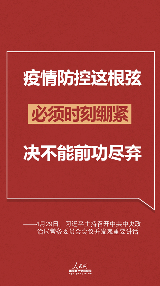 习近平指出,疫情防控这根弦必须时刻绷紧,决不能前功尽弃。