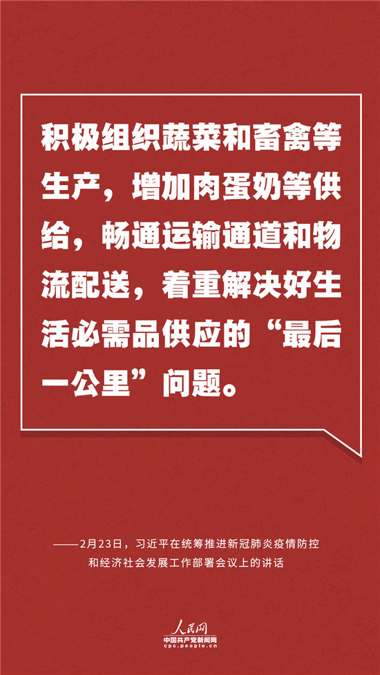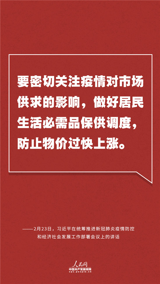 当晚,新华社发布了习近平在这次重要会议上的讲话全文。万余字的讲话中,习近平总书记针对“食品供应”“物价”“就业”“农业生产”“医疗救治”等民生话题都给出详细的“真招”“实招”,人民网·中国共产党新闻网为您梳理。(点击查看全文 )