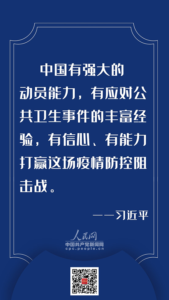 ● 中华民族是从艰难困苦中走过来的。中国有信心、有能力、有把握打赢这场疫情防控阻击战。
