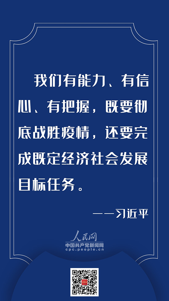 ● 我们有能力、有信心、有把握,既要彻底战胜疫情,还要完成既定经济社会发展目标任务。相信中国战胜这次疫情后,将更加繁荣昌盛。