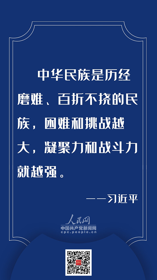 ● 中华民族是历经磨难、百折不挠的民族,困难和挑战越大,凝聚力和战斗力就越强。