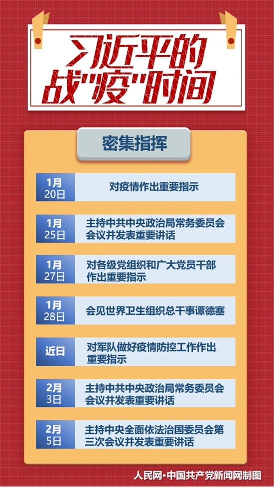 这次疫情发生以来,党中央高度重视,习近平总书记亲自部署、亲自指挥,多次召开会议、多次听取汇报、作出重要指示,要求各级党委和政府及有关部门制定周密方案,组织各方力量开展防控。新时代学习工作室为您梳理出习近平总书记的战“疫”时间。