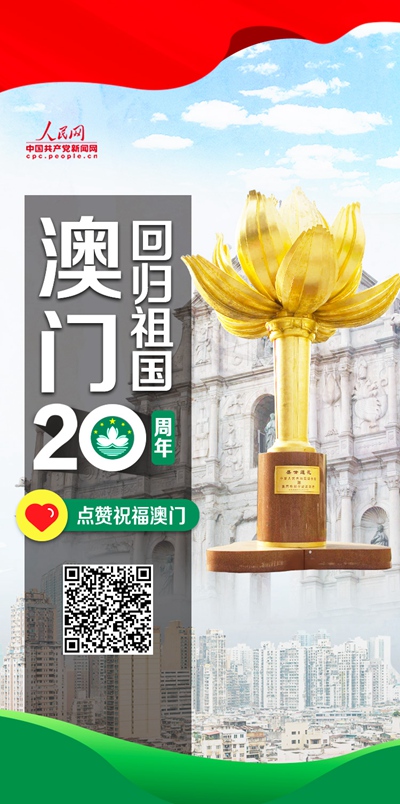 20年濠江奔流,20载莲花璀璨。回归以来,五星红旗与澳门特区区旗始终在金莲花广场高高飘扬。“一国两制”的成功实践,让澳门这座莲花“小城”,在南海之滨盛世绽放。