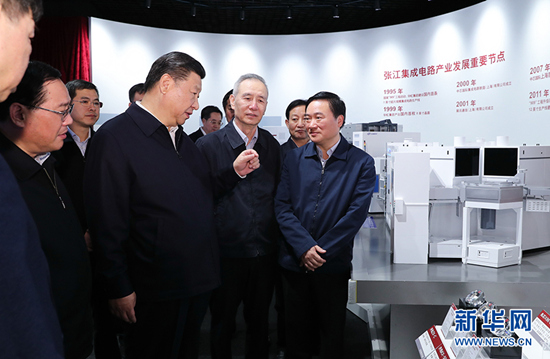 2018年11月6日,习近平在张江科学城展示厅考察,了解上海科技创新和科技成果转化情况。 新华社记者 谢环驰摄