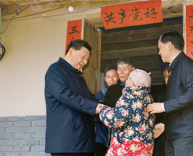 中华民族传统节日农历春节来临之际,中共中央总书记、国家主席、中央军委主席习近平来到四川考察调研,看望慰问各族干部群众,向全国各族人民致以美好的新春祝福。这是2018年2月11日上午,习近平在凉山彝族自治州昭觉县三岔河乡三河村贫困户吉好也求家中看望。
