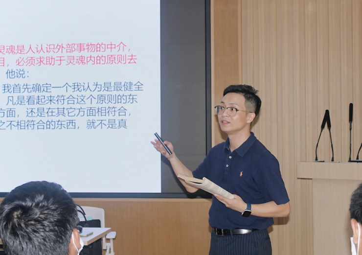 随后,李功清老师以“古希腊文化先声II·苏格拉底思想”为题,重点从“苏格拉底与‘智者’学派之异同”与“苏格拉底的主要思想”这两个方面进行分享。他概述了苏格拉底自称没有智慧但爱智慧,以对话式教学方式为主。另外,他指出,苏格拉底的主要思想体现在“认识你自己”与“德性即知识”这两个方面。一方面,苏格拉底认为哲学不能单纯研究自然,而不知道有用处的人事问题,诸如正义、明智、勇敢等德性的定义,治国的道理,统治者的品质等,据此苏格拉底要求首先研究人自身,通过审视人自身的心灵的途径研究自然;另一方面,苏格拉底认为德性就是内在于心灵的原则,是指过好生活或做善事的艺术,是一切技术中最高尚的技艺。他认为这是一种每一个人都能够学会、或可以确定地知道的原则。在此意义上,他把德性等同于知识。