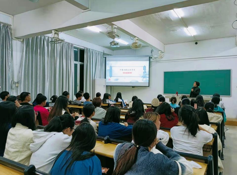 讲座伊始,唐副教授对中华优秀传统文化进行了导引,简明扼要地从“传统文化的主要特点和基本精神”“传统文化的历史作用和时代价值”及“大学生如何传承与弘扬传统文化”三个方面进行概述,使同学们有一个正确的视角和立场把握如何学习和传承传统文化。