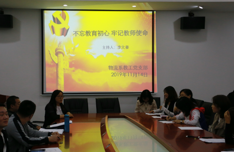 【本网讯】为了进一步推进“不忘初心、牢记使命”主题教育的学习,强化高校教师的职业道德观念,坚守育人初心,为社会培养大批德才兼备的人才,物流系教工党支部于11月14日在系部楼召开“不忘教育初心,牢记教师使命”专题学习会议。物流系教工党支部组织委员李文豪同志主持。