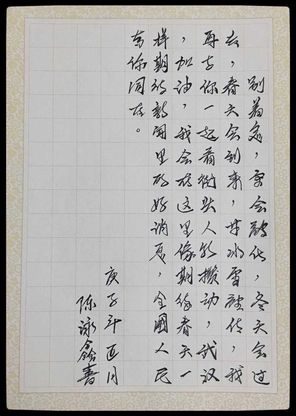 图三 党员同志为武汉加油的书法作品