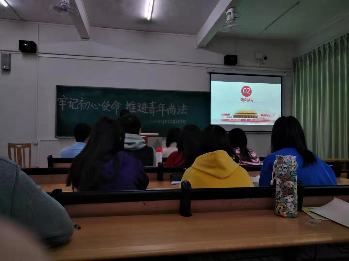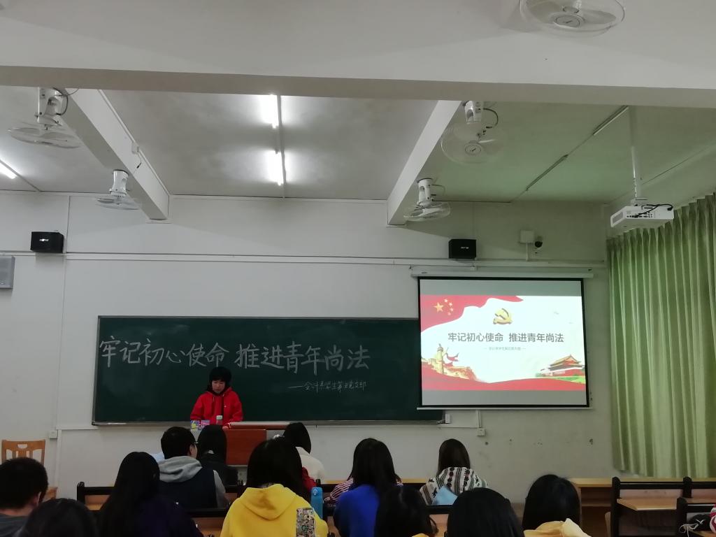 【本网讯】12月9日下午,会计系学生第五党支部在第二教学楼A202课室开展“牢记初心使命,推进青年尚法”主题教育活动。党员同志20人,发展对象代表5人参加,活动由学生党员丁文婷同志主持。