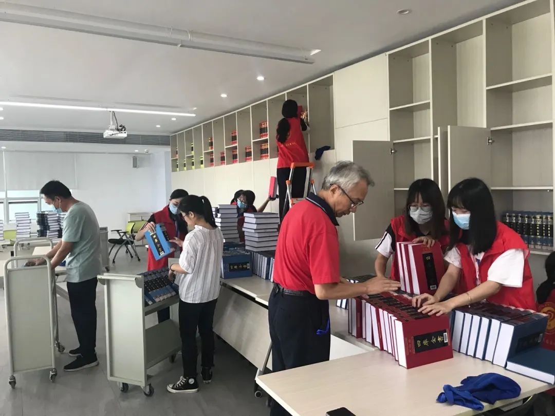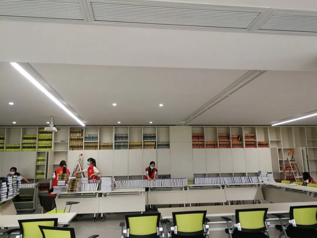 在熊家良馆长的亲自带领下,王自东馆长助理及办公室张圣荧老师与志愿者同学共同对摆放在多功能厅合计1500册“镇馆之宝”的《四库全书》进行重新排序、归架整理。学生党员志愿者在整理图书过程中表现出的积极能干、甘于奉献的服务作风,得到馆领导的一致赞扬和认可!