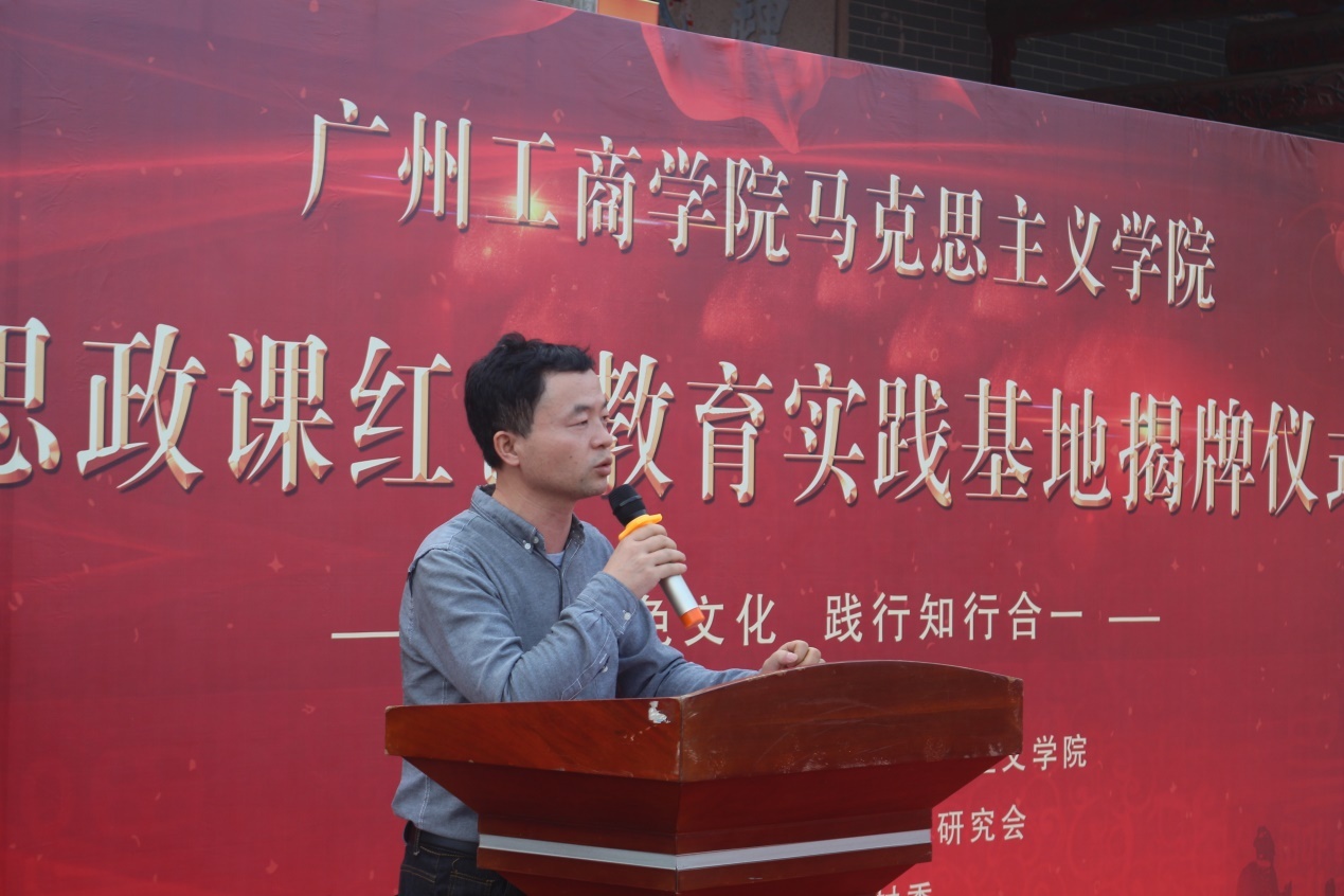 【本网讯】为了挖掘花都红色基因,弘扬中华传统文化,进一步加强大学生的社会实践教育,ky开元马克思主义学院与广州花都祠堂文化研究会共建思政课红色教育实践教学基地,于12月11日下午在花都区狮岭镇义山村祠堂(中共杨义山村支部旧址)举行揭牌仪式。