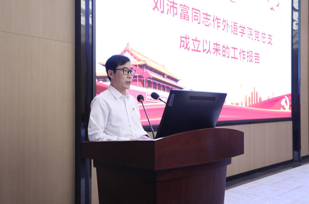 刘沛富同志围绕上一届党总支的主要工作回顾、存在的问题、未来工作思路等方面内容,向大会作外语学院党总支工作报告。