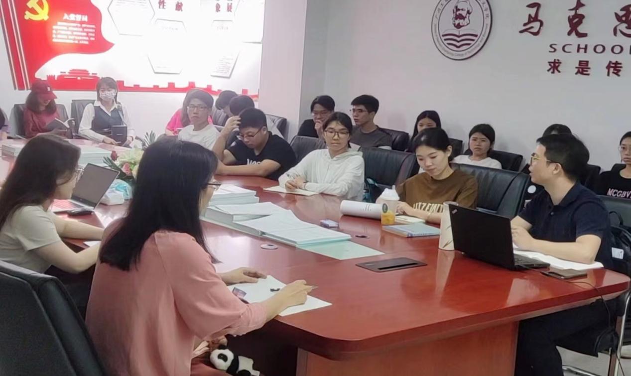 【本网讯】为深入学习贯彻党的二十大精神,进一步加强青年大学生思想文化建设,提高综合素质,4月23日晚,马克思主义学院大学生马克思主义理论研究读书会在三水校区举行。马克思主义学院教师第一党支部李功清老师领读并主讲,马丽洁老师、叶桐润老师与张松峰老师作为嘉宾参与交流分享。本期读书的主要内容为马克思《资本论》第一卷第一篇“商品和货币”。