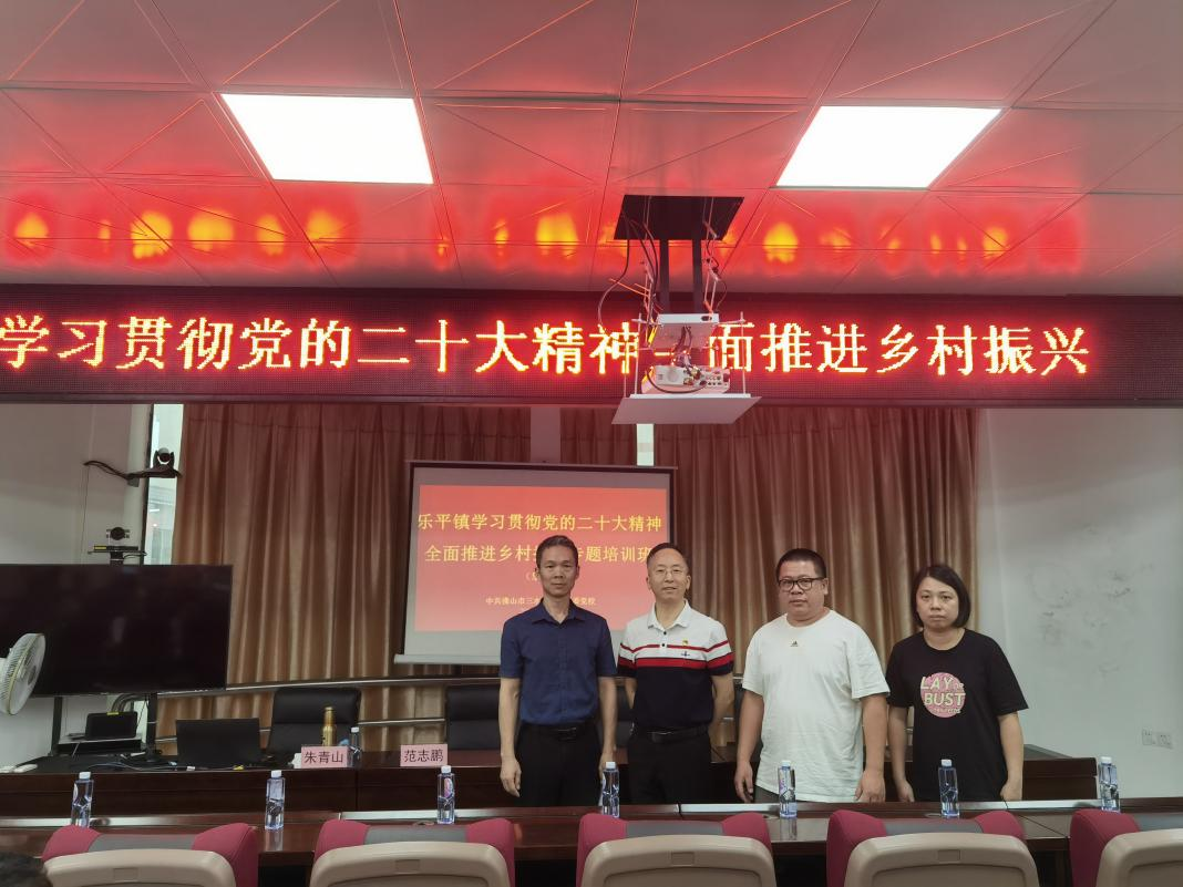 【本网讯】为全面学习宣传贯彻党的二十大精神,深入学习贯彻习近平新时代中国特色社会主义思想,引导村民党员用心用情用力种好乡村振兴“责任田”,进而打造校地协同发展命运共同体。ky开元集团官网马克思主义学院党总支与佛山三水区乐平镇委党校协同组织开展“学习贯彻党的二十大精神全面推进乡村振兴”专题培训班。马克思主义学院宣讲团专家朱青山副教授应邀于5月11日和5月12日分别深入佛山市三水区乐平镇乐平村村委和竹山村村委开展了《以中国式现代化推进中华民族伟大复兴——党的二十大精神解读》为题的党的二十大精神专题讲座。