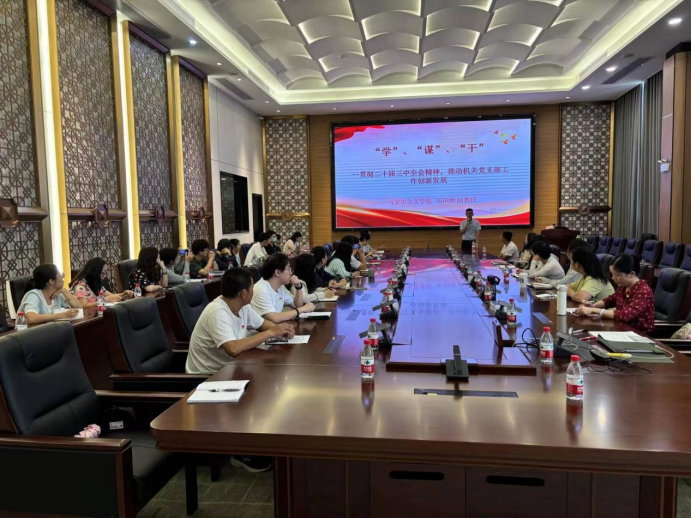 为深入学习宣传贯彻党的二十届三中全会精神,积极展示习近平总书记关于全面深化改革的一系列新思想、新观点、新论断在新时代发展的成效和亮点,机关四支部联合机关五支部于9月29日组织开展“学习贯彻党的二十届三中全会精神,推动机关党支部工作创新发展”主题宣讲会,会议邀请了马克思主义学院范国增副教授作主题宣讲,机关四支部和机关五支部全体党员、发展对象及入党积极分子参加,宣讲会由机关四支部书记周声宇主持。