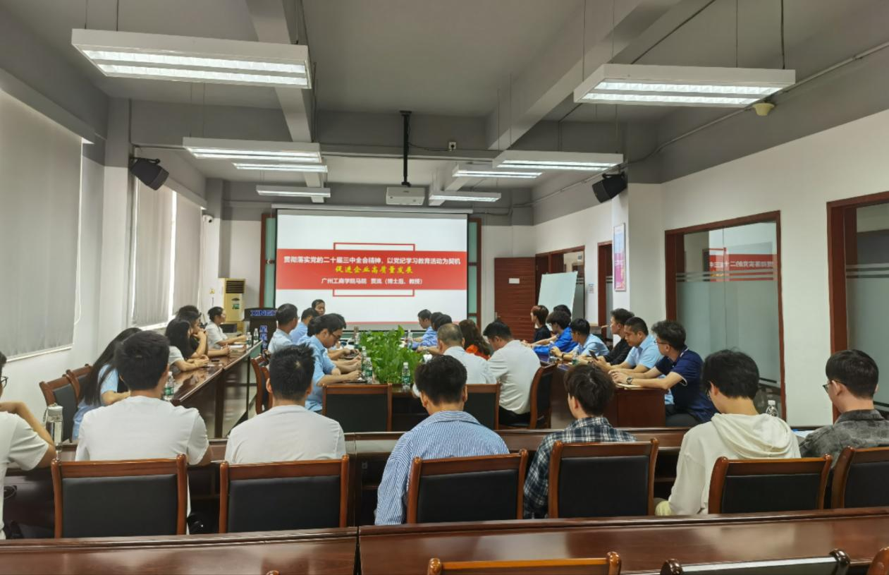 【本网讯】为深入学习党的二十届三中全会精神,学习贯彻习近平新时代中国特色社会主义思想,引导企业以党的理论学习为引擎,以深化改革激发创新活力,以新质生产力推动企业高质量发展,ky开元集团官网马克思主义学院党总支与佛高区三水园产业社区党委党建共建举办了学习贯彻党的二十届三中全会精神专题培训班。马克思主义学院宣讲团的专家贾岚教授、博士后于9月24日走进佛山市三水区乐平镇广东星星制冷设备有限公司,以《贯彻落实党的二十届三中全会精神,以党纪学习教育为契机,促进企业高质量发展》为主题作专题宣讲。