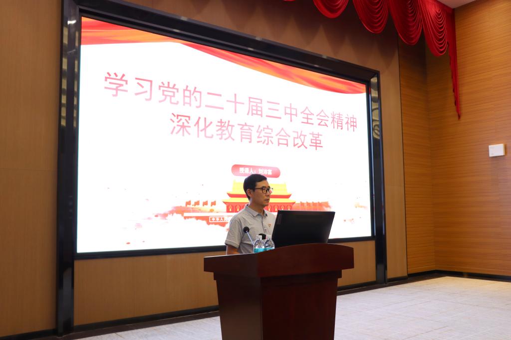 会上,外语学院党委书记、院长刘沛富教授以深化教育综合改革为主题,从充分认识新时代新征程深化教育综合改革的重大意义,深刻认识党的十八大以来教育综合改革取得的显著成效,扎实抓好深化教育综合改革的重点举措落实3个方面全面解读、深入分析,带领与会师生党员、发展对象和积极分子深刻理解深化教育综合改革的重要内容。