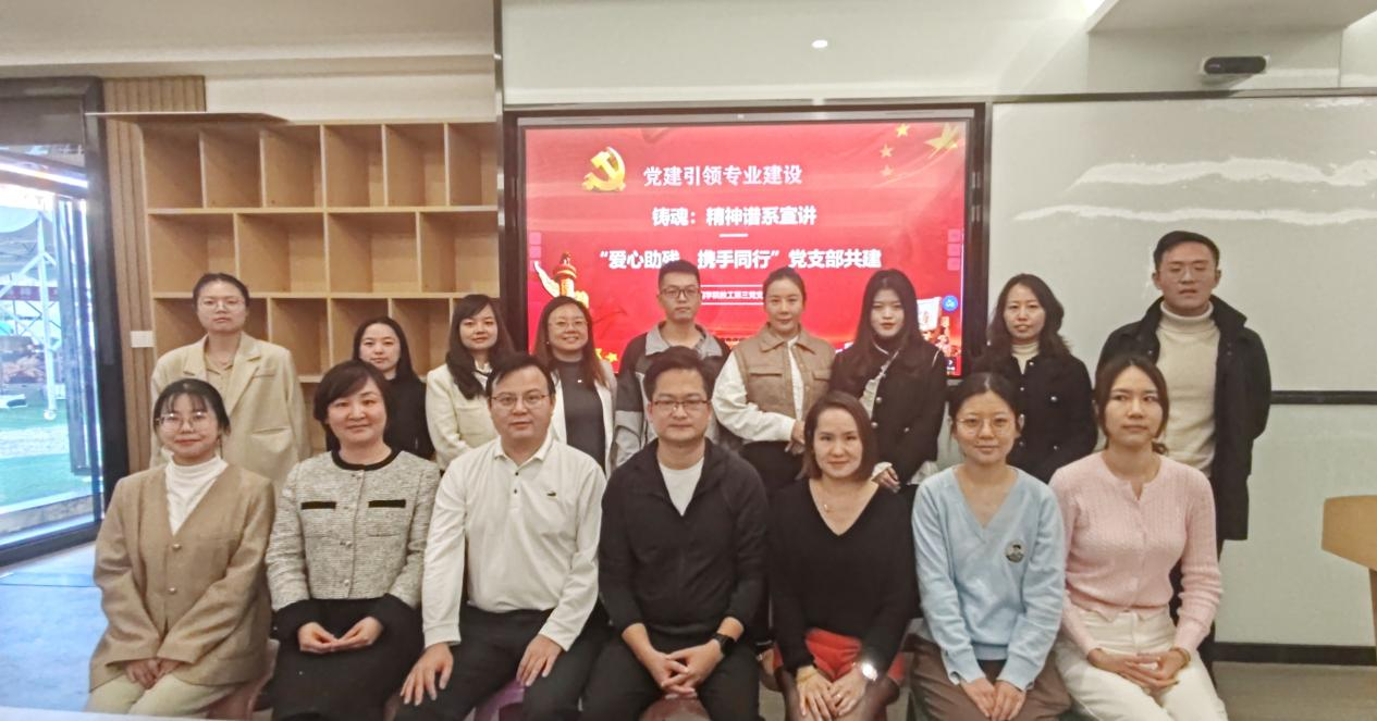 2024年11月25日,一场盛大的党支部共建会议隆重举行,会议主题为“爱心助残,携手同行”。参会人员包括商学院教工第三党支部书记赖洁瑜副教授、专业负责人邓任锋高级工程师,以及商学院教工第三党支部的全体教师与学生党员。本次会议还特别邀请了英才汇副总经理陈伟东先生共同参与。会议重点聚焦于铸魂精神谱系的宣讲,旨在共同探讨爱心助残事业发展的新途径。
